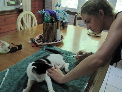 Give a cat a needle.